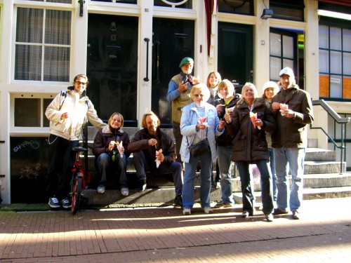 So everybody met at 4AM on Saturday to get to the airport and to catch a plane with direction Amsterdam. We spent there the whole day and had a lot of fun! We took a boat trough the Grachtes, went to museums, walked throug the whole city and did a lot of sightseeing… ;.) After dinner and very tired we flew back to Vienna. From there we drove to Podersdorf to party! All our friends allready waited there to celebrate with us… The party was great and it took us till next morning before we could go to bed…
